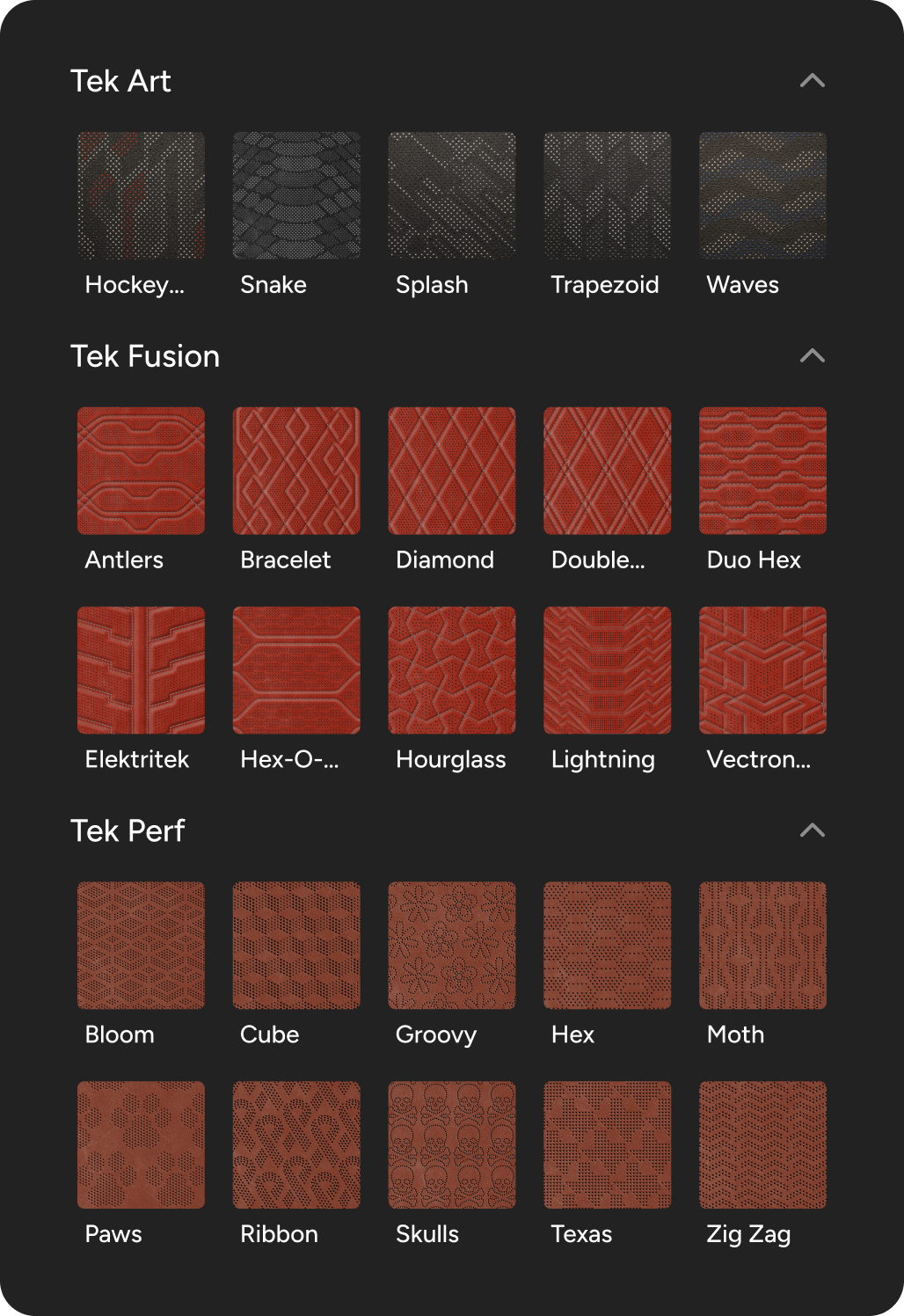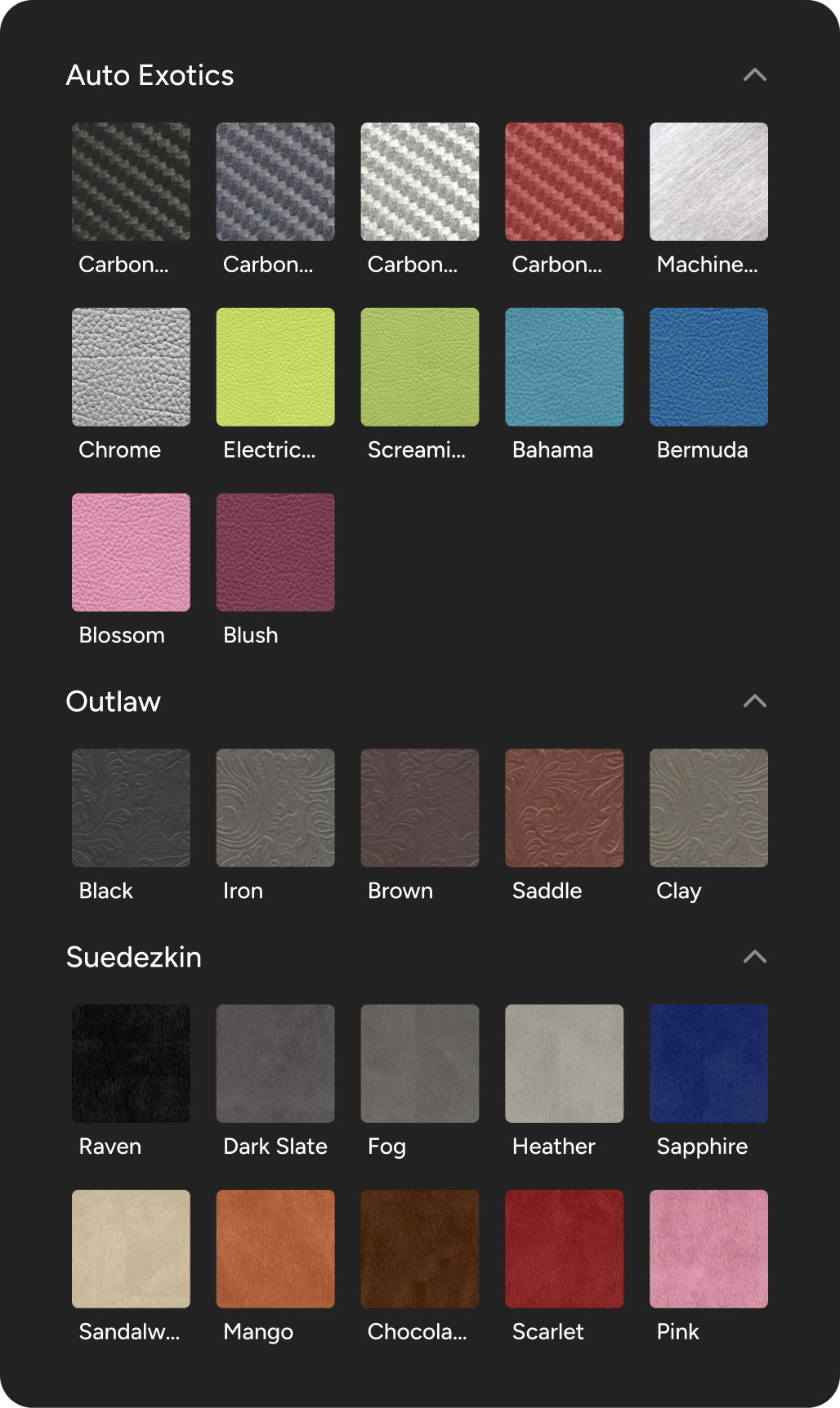 Browse our Materials page to see all available materials and combine them to create even more unique interior options.