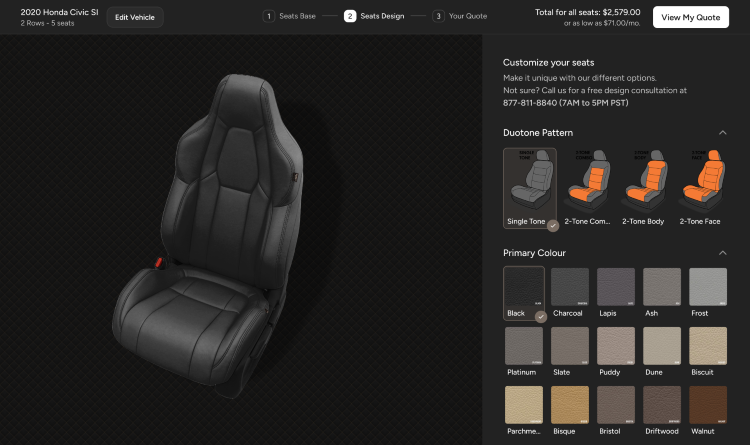 We developed a seat customization builder so you can experiment and try different options before bringing your ideas to life.